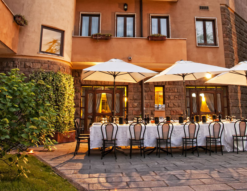 En el exterior hay un pequeño dehor, con vistas al restaurante sala de desayunos, donde en primavera/verano se pueden consumir desayunos o incluso cenas.